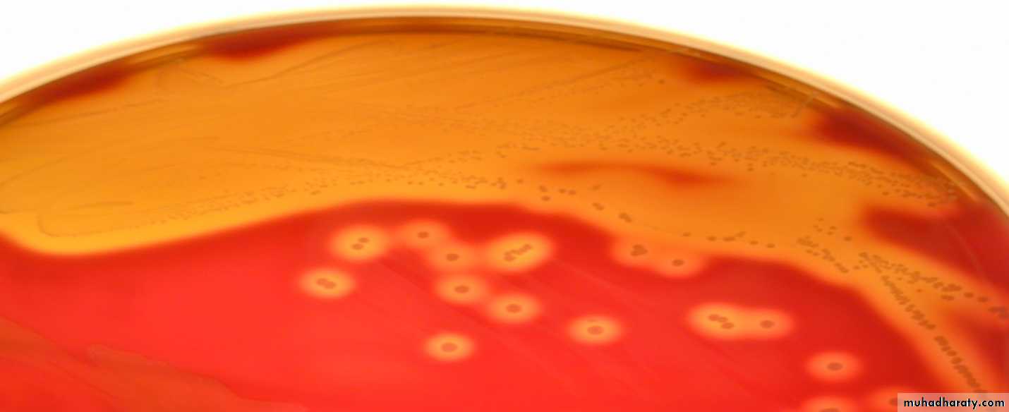 β-hemolytic Sterptococci.• It causes complete hemolysis to RBCs (caused by hemolysins) leading to formation of clear zone around the colonies