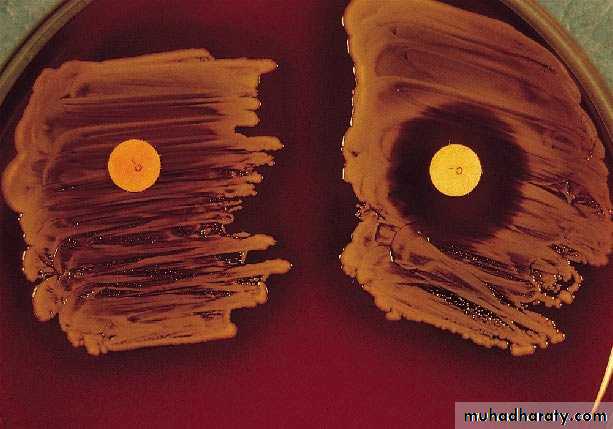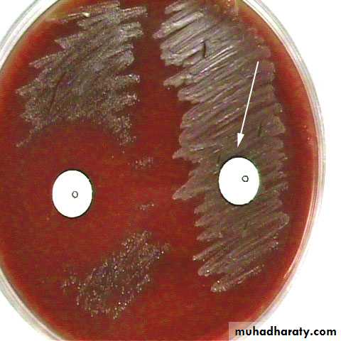 • Bacitracin will inhibit the growth of gp A Strep. pyogenes giving zone of inhibition around the disk