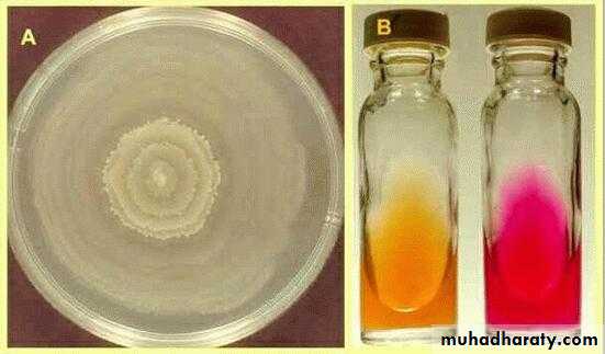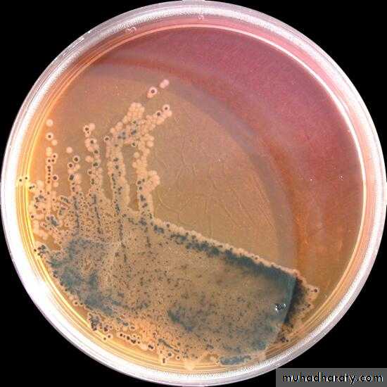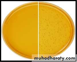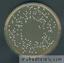 • 1. Zone of greenish discolouration around the colonies.