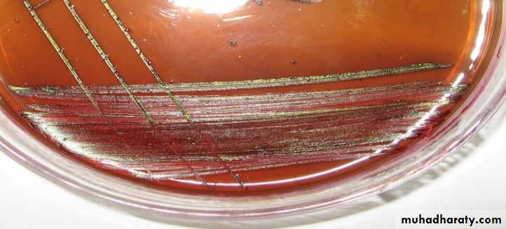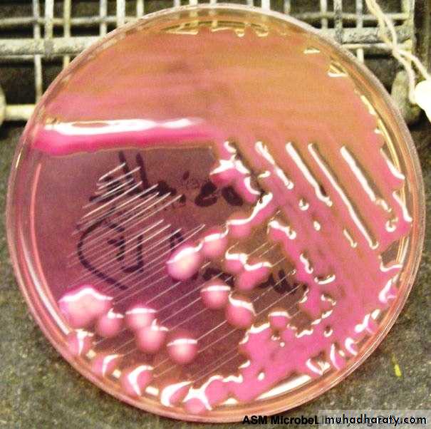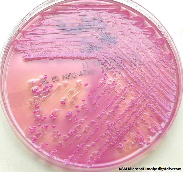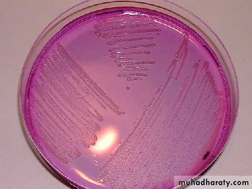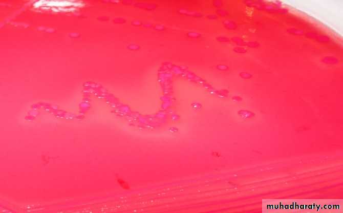 1-Mac Conkey agar : Pinkcolonies