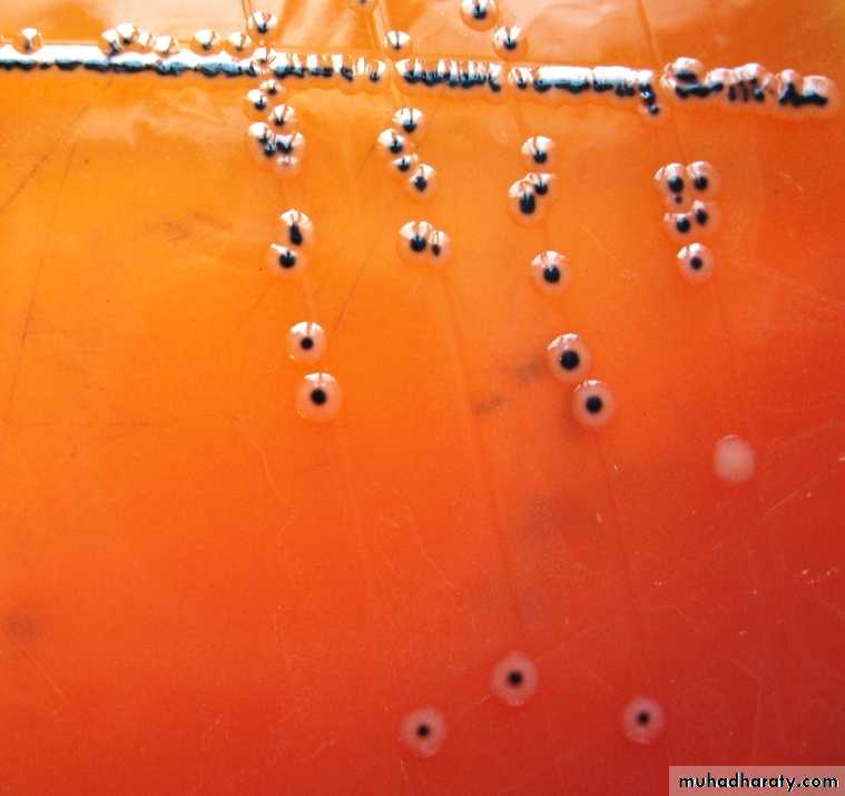 with black center ( SS agar ) .Shigella spp