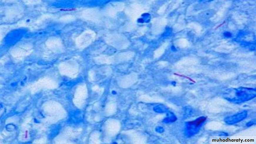 • Acid fast bacteria appear as red• Non-acid fast bacteria appear as blue