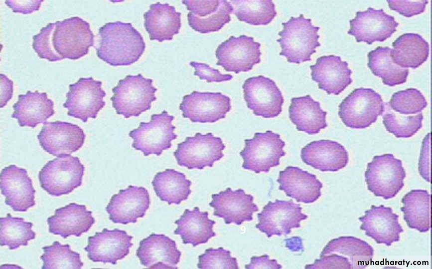 a. CBC & Blood film ( Hb, HCT, MCV , MCH , MCHC , WBC & differential , platelets , reticulocytes ( will be high in hemolytic anemia & bleeding) , the blood film may show anisocytosis ( abnormality in the size of the RBC), poikilocytosis ( abnormality in the shape of RBC) ,or abnormal cells like : tear drop cells ( myelofibrosis ) , cigar shape cells ( iron difeciency anemia) , target cells ( thalasemia , liver disease ) , RBC fragments ( shistocytes ) ( in microangiopathic hemolytic anemias) , howel jolly bodies ( splenectomy ) , blister cells & bite cells ( G6PD dificiency ) , burr cells ( uremia ) … etc.
