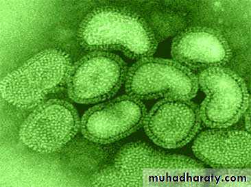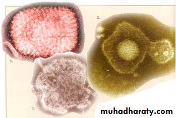 1938 – First Electron MicroscopeThe electron microscope is capable of magnifying biological specimens up to one million times. These computer enhanced images of 1. smallpox, 2. herpes simplex, and 3. mumps are magnified, respectively, 150,000, 150,000 and 90,000 times.