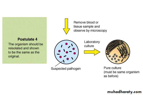 The microbe must always be present in every case of the diseaseIt must be isolated in pure culture on artificial media
