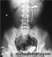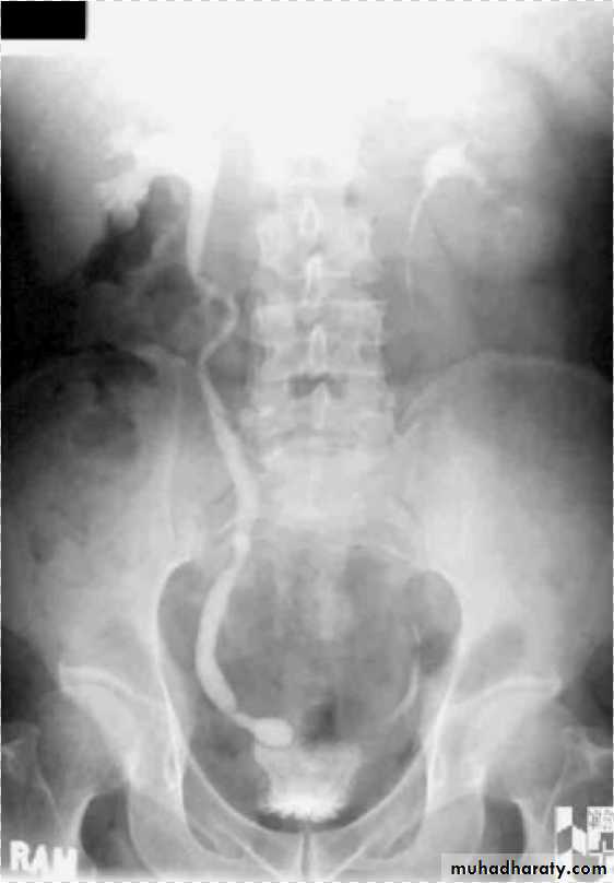 - There is rounded or elliptical dilatation of lower end of ureter with thin lineal filling defect around it , resembling (cobra head appearance),