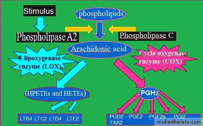 eicosanoids are NOT synthesized in advance and stored in granules – when needed, they can be produced very quickly from arachidonate released from membranes