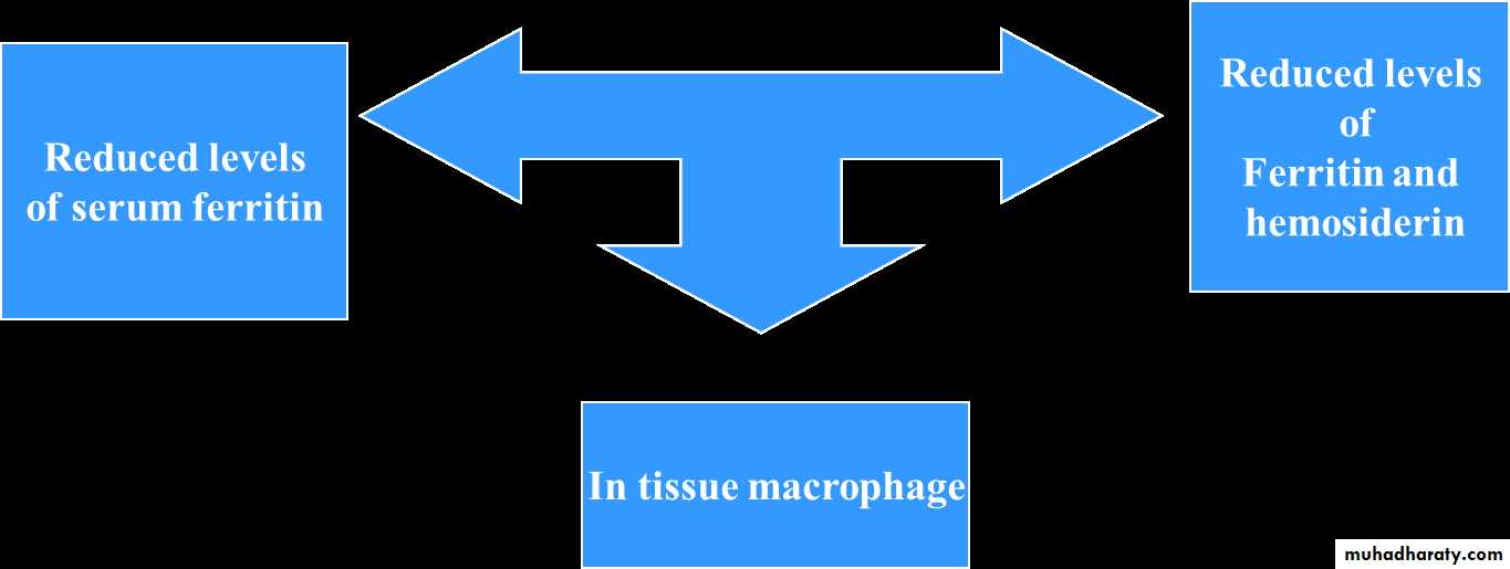 in negative iron balance, and to preserve the level of iron in the serum and RBC, results in Depleting the tissue iron stores and this results in: