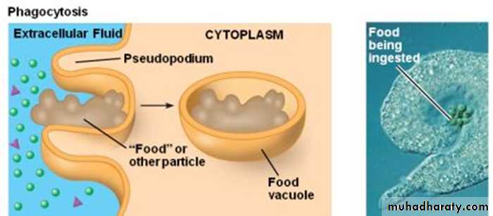 ingestion of large particles, such as bacteria.