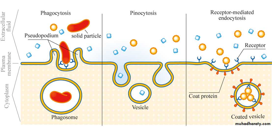 Very large particles enter the cell by endocytosis ,it is a form of active transport .The principal forms of endocytosis are pinocytosis and phagocytosis.Pinocytosis
