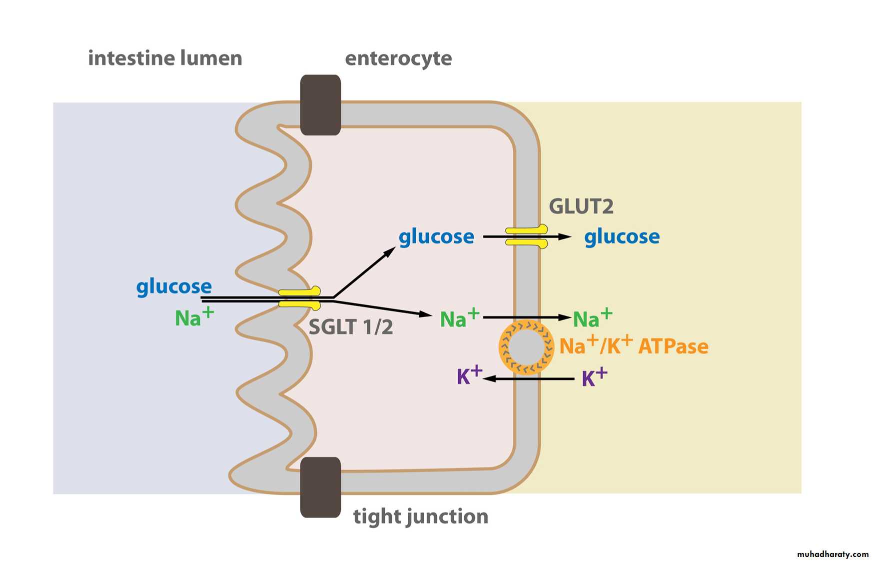 Transport of this type occurs through the(1) intestinal epithelium,