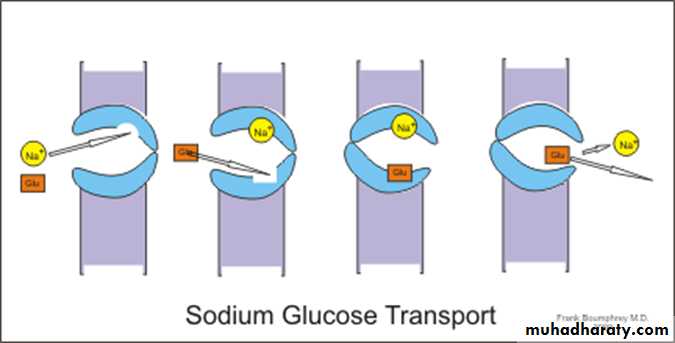excess sodium outside the cell cause sodium to diffuse to the inside the cell. this diffusion of sodium can pull other substances with the sodium through the cell membrane. This is called co-transport.The carrier in this instance has as an attachment site for both the sodium ion and the substance. Once they both are attached, the energy gradient of the sodium ion causes both the sodium ion and the other substance to be transported together .Co-Transport of Glucose and Amino Acids