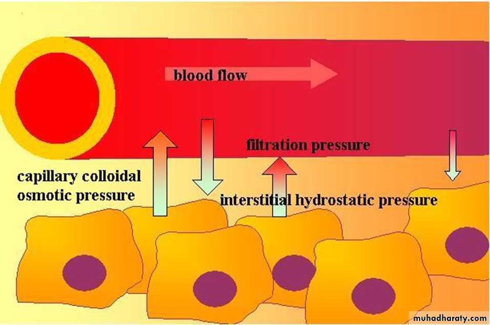 causes of extracellular edema:(1)abnormal leakage of fluid from the plasma to the interstitial spaces(Increase Capillary Filtration)