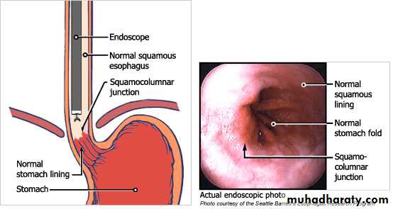 Barrett esophagusIs a metaplastic change of the lower esophageal mucosa in response to chronic reflux of gastric content, it occur in 15-20% of patient with GERD.