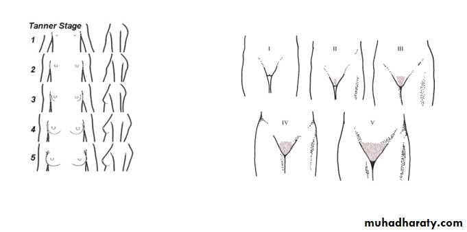 No mensis by age of 15Testicular size <2.5 cm or 4 ml or pubic hair is not present by age of 14 in male.