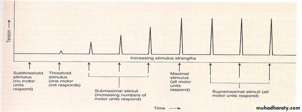 3-A stronger than threshold stimulus produces an AP of the same magnitude as the threshold stimulus and therefore produces an identical contraction.