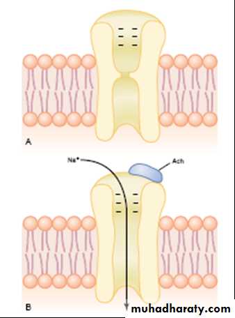 3-The acetylcholine open the acetylcholine- gated channels, which allows sodium ion to flow into muscle fiber, this initiate end plate potential (The sudden entrance of sodium ions into the muscle fiber causes the electrical potential inside the fiber to increase in the positive direction as much as 50 to 75 millivolts), which is necessary to initiate an A.P