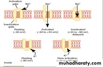 The closure and opening depends on the voltage difference across the membrane. At rest they are closed preventing Na entry. After stimulation the membrane potential becomes less negatives thus opening Na channels for very short time allowing large amounts of Na ions to enter the cell down electrical and chemical gradients thus reversing the membrane potential to positive (depolarization). At the end of depolarization Na channels close (figure 3).Voltage-Gated Potassium Channels
