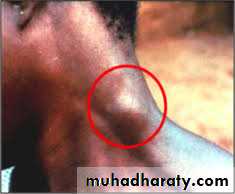 Enlargement of the posterior cervical lymph nodes (Winterbottom’s sign) is commonly seen.