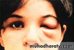 The acute phase of Chagas’ disease : consists of facial edema and a nodule (chagoma) near the bite site, coupled with fever, lymphadenopathy, and hepatosplenomegaly. A bite around the eye can result in unilateral palpebral swelling & conjuctuvitis ( Romana’s sign). The acute phase resolves in about 2 months.Most individuals then remain asymptomatic, but some progress to the chronic form with myocarditis and megacolon.