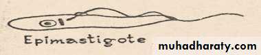 2-5 microns in diameter, have single nucleus with large central karyosome, the kinetoplast (which consists from dot-like blepharoplast and parabasal body beside it) lies at right angle to the nucleus.