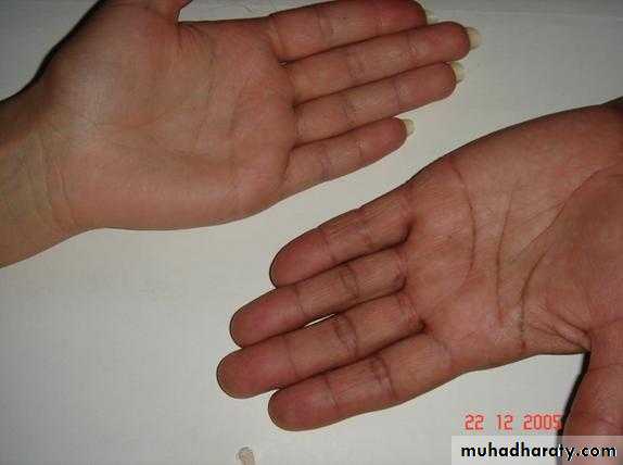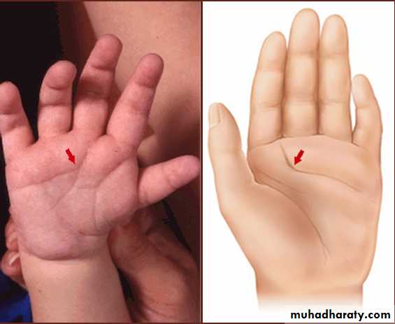 Look at the palmar crease