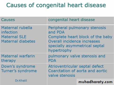 Polygenic abnormalities probably explain why a previous child with congenital heart disease doubles the risk for subsequent children and the risk is still higher if either parent has congenital heart disease.