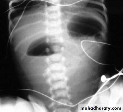 Results in the accumulation of gas and fluid and reduced reabsorption