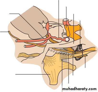 • THE LACRIMAL DRAINAGE SYSTEM (Fig. 1.4)• Tears drain into the upper and lower puncta and then into the lacrimal sac via the upper and lower canaliculi. They form a common canaliculus before entering the lacrimal sac. The nasolacrimal duct passes from the sac to the nose. Failure of the distal part of the nasolacrimal duct to fully canalize at birth is the usual cause of a watering, sticky eye in a baby. Tear drainage is an active process. Each blink of the lids helps to pump tears through the system.
