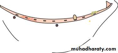 • sympathetic supply is damaged (as in Horner’s syndrome) a slight ptosis results.• The margin of the eyelid is the site of the mucocutaneous junction. It contains the openings of the meibomian oil glands which are located in the tarsal plate. These secrete the lipid component of the tear film. Medially, on the upper and lower lids, two small puncta form the initial part of the lacrimal drainage system