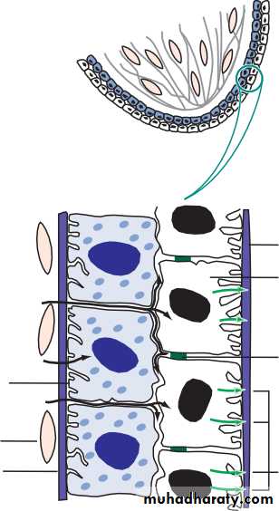 • The epithelium, an anterior squamous layer thickened peripherally at the limbus where it is continuous with the conjunctiva. The limbus houses its germinative or stem cells.• An underlying stroma of collagen fibrils, ground substance and fibro- blasts. The regular packing and small diameter of the collagen fibrils accounts for corneal transparency.