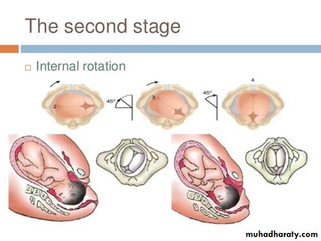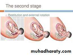 In order to be delivered,shoulders have to rotate into the the direct AP plane (the widest diameter at the outlet).When this occurs,the occiput rotates through a further one-eight of a circle to the transverse position.This is called external rotation.