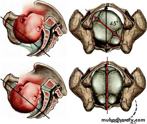 • Lever action producing ftexion of the head; conversion from occipitofrontal to suboccipitobregmatic diameter typically reduces the anteroposterior diameter