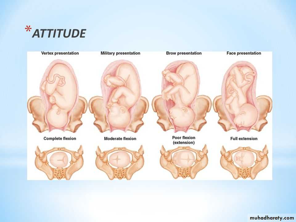 • Is the relation of fetal parts to each others.• In later months posture of the fetus folded on itself to accommodate the shape of the uterus (flexed head, thighs, knees &feet ,the arms crossed over the chest)