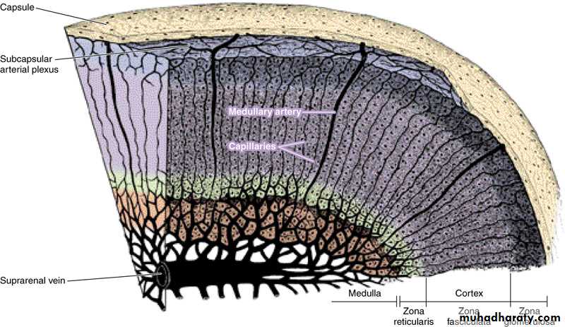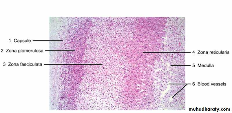 Adrenal (suprarenal) gland: cotrex and medulla. Stain H&E .