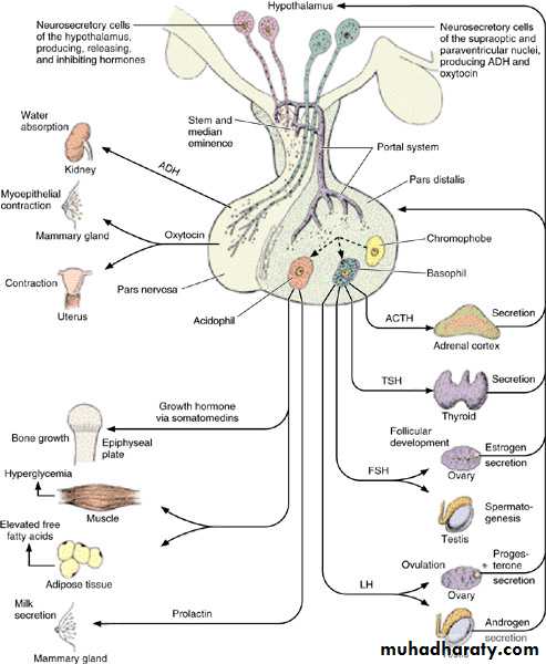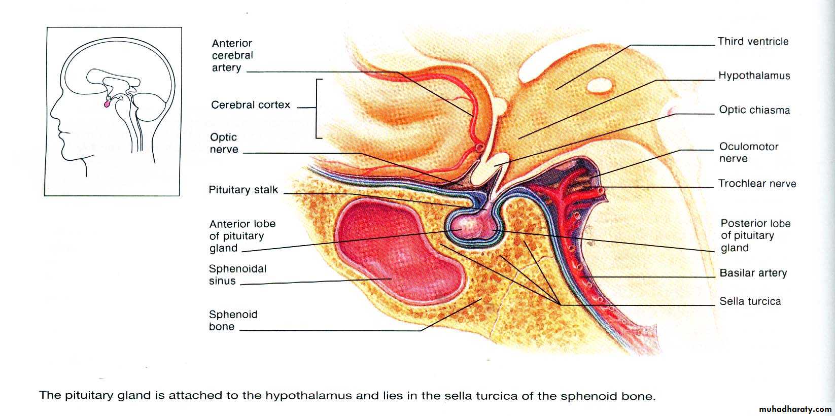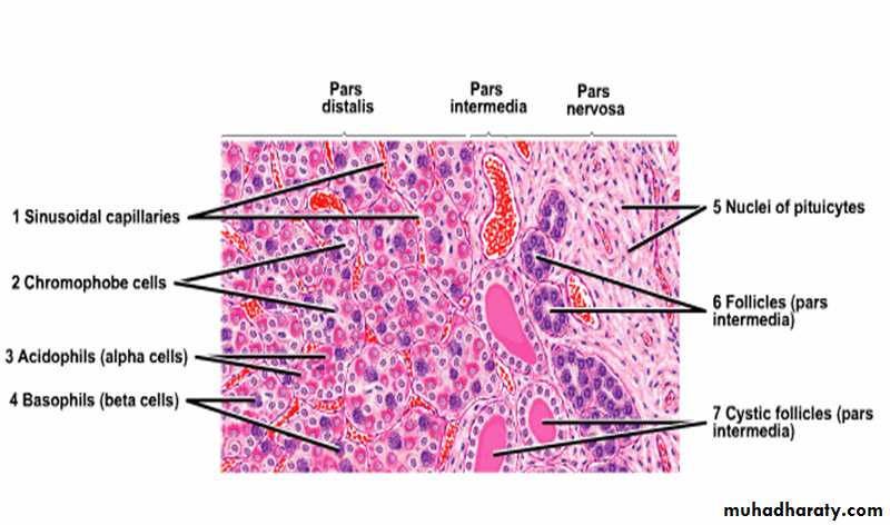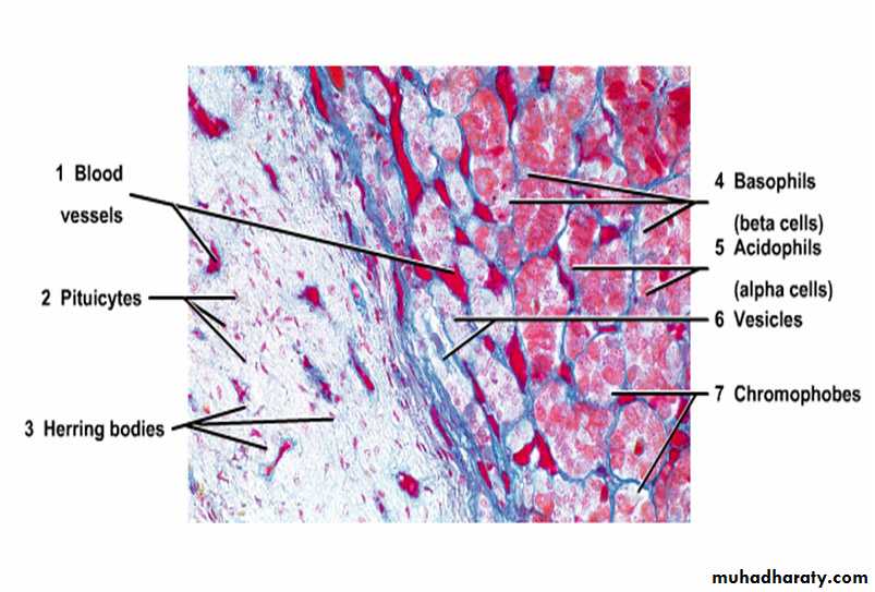 Hypophysis: pars distaiis, pars intermedia, and pars nervosa. Stain: mallory-azan & orange G.