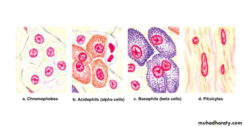 Cell types in the Hypophysis. Stain: modified azan. Oil immersion.
