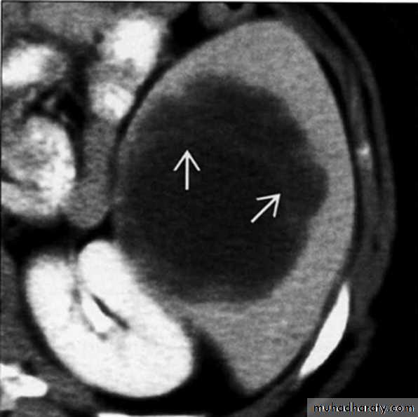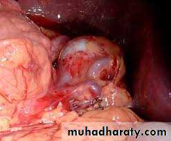 • Surgicaltreatment is only necessary for large symptomatic cysts after confirmation of the diagnosis by ultrasound or CT.