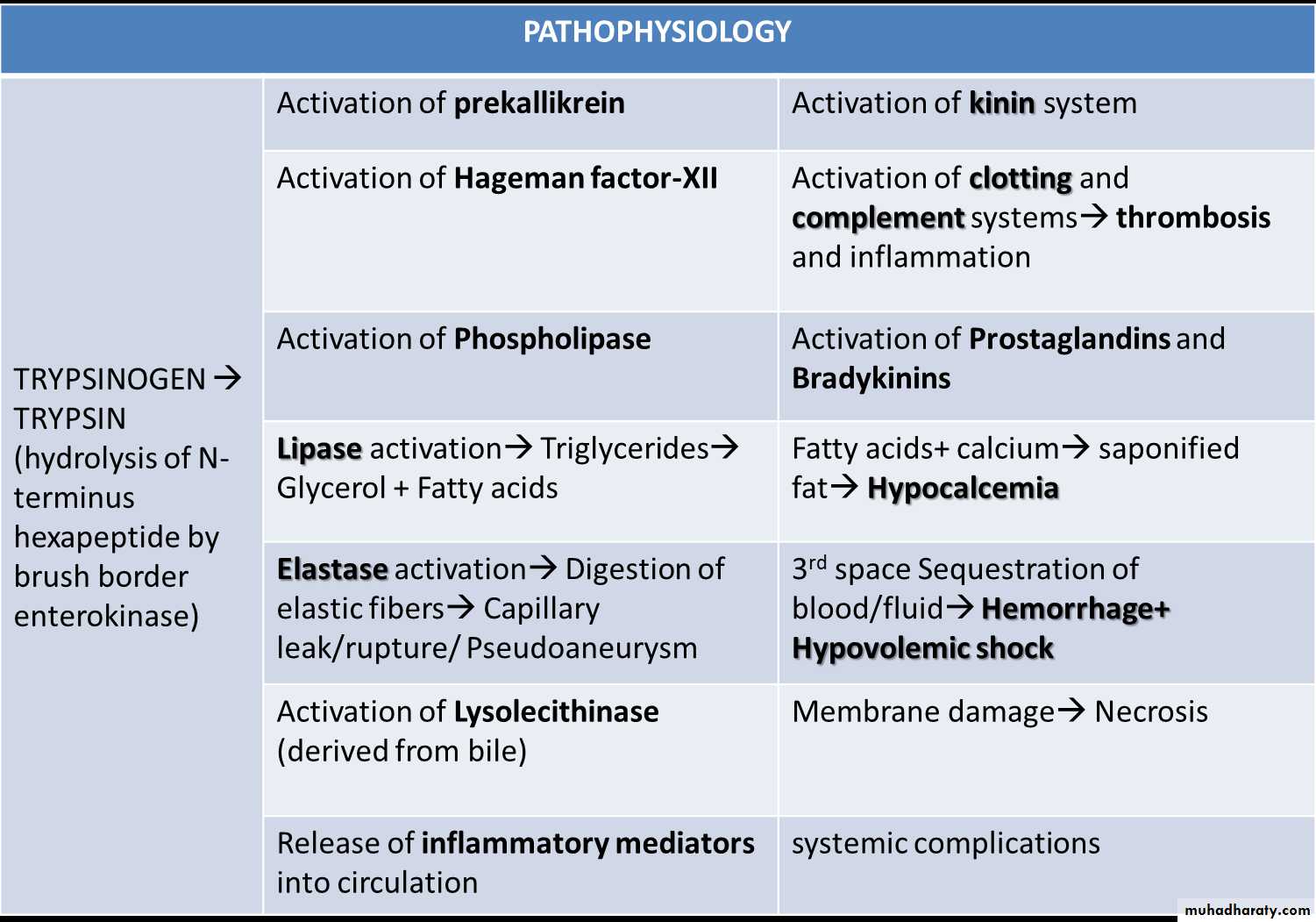 Autodigestion of pancreatic substance by inappropriately activated pancreatic enzymes (especially trypsinogen)Possible causes of acute pancreatitis