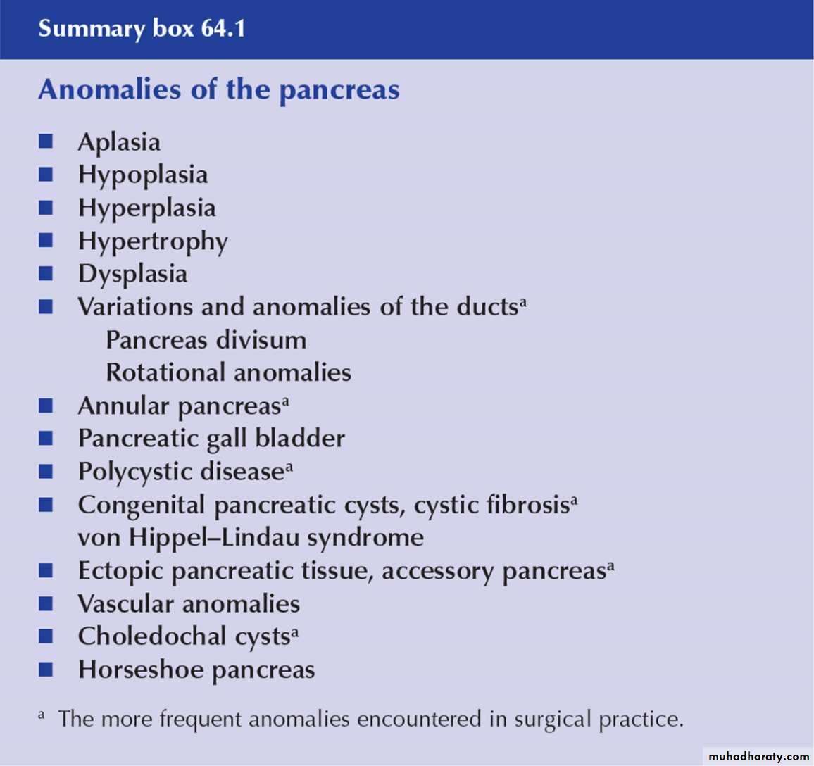 The disease may occur in later life as one of the causes of pancreatitis, in which case resection of the head of the pancreas is preferable to lesser procedures.