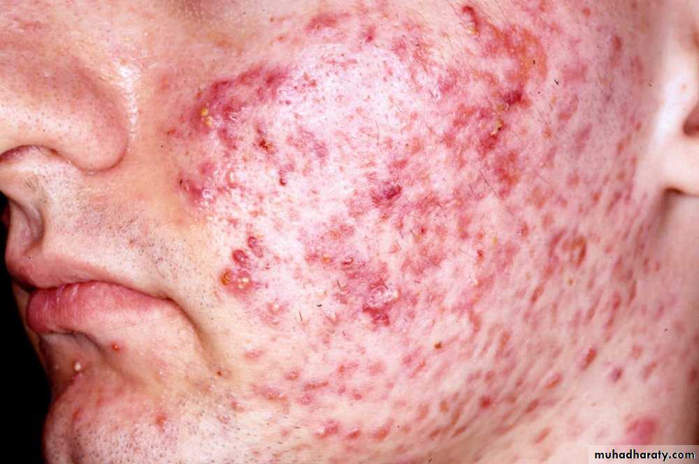 Cysts and nodules - large, inflamed, pus filled lesions deep under the skin that can cause pain and scarring.
