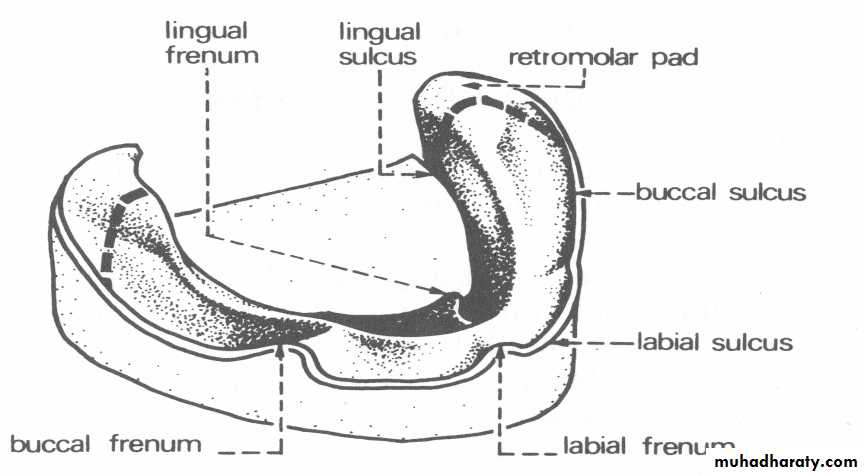 Buccal Sulcus. The buccal sulcus extends posteriorly from the buccal frenum to the buccal aspect of the retromolar pad.