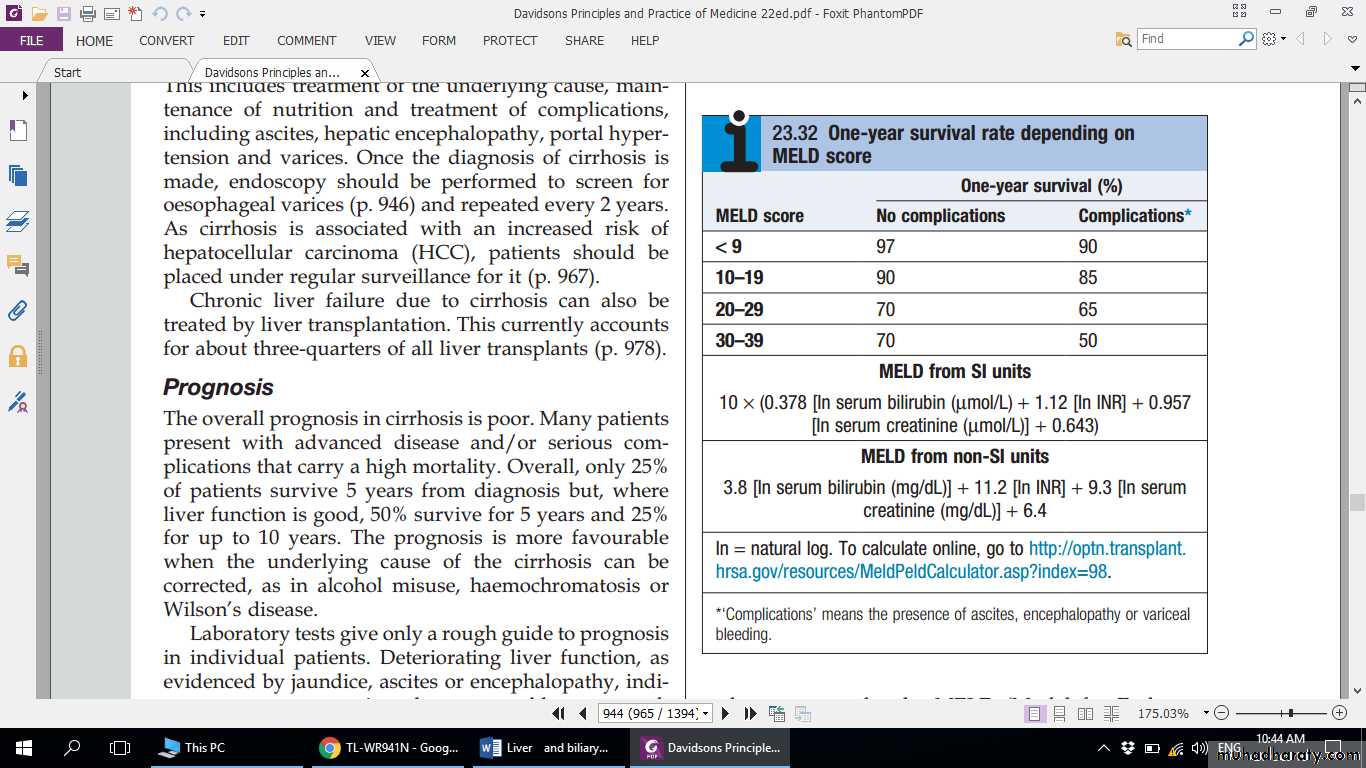 The MELD is more difficult to calculate at the bedside but, unlike the Child–Pugh score, includes renal function; if this is impaired, it is known to be a poor prognostic feature in end-stage disease.