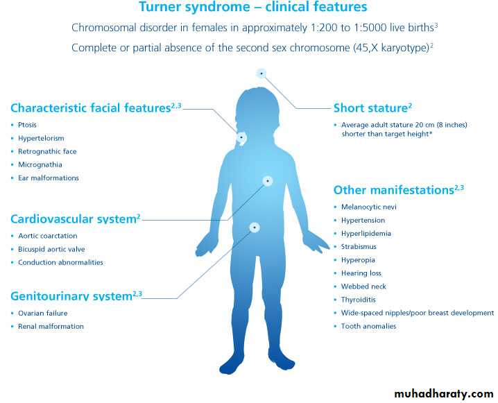 Height:an abnormality in appropriate height for age may reflect an underlying chromosomal disorder (patients with Turner's syndrome are often short, whereas patients with androgen insensitivity are often tall).