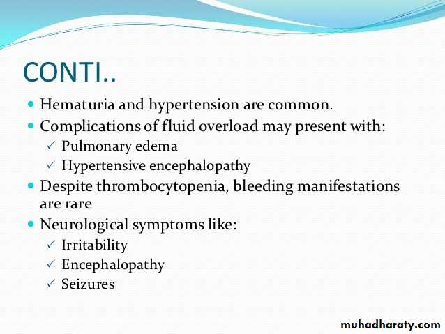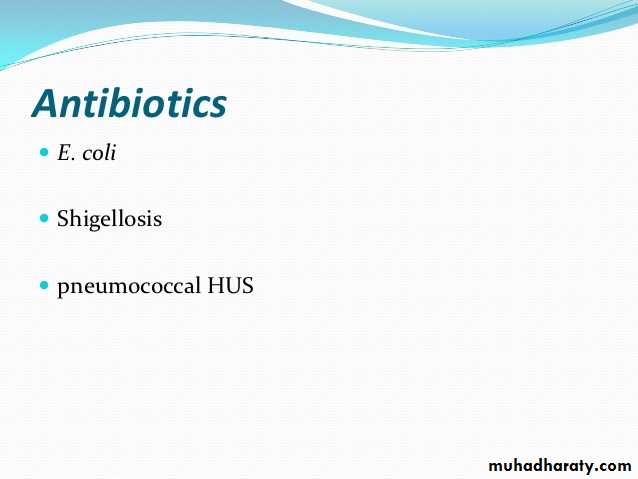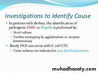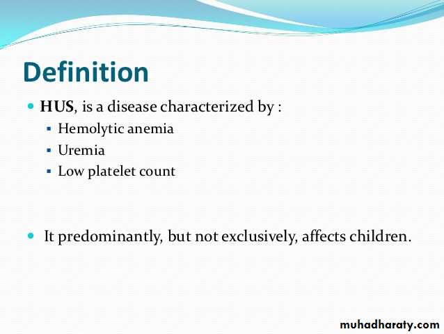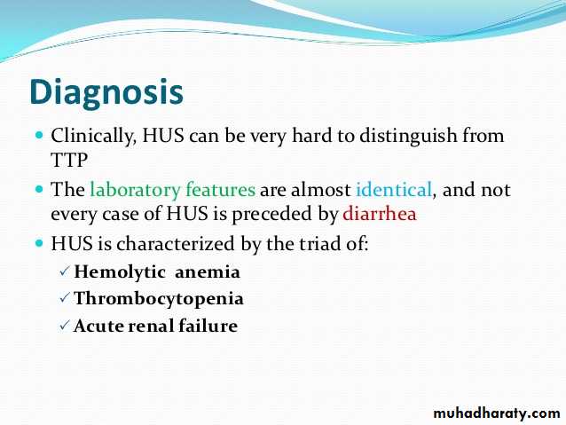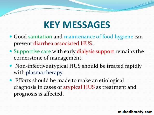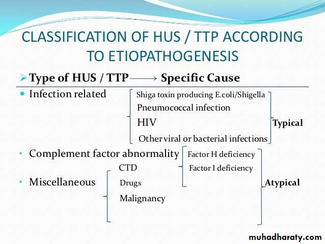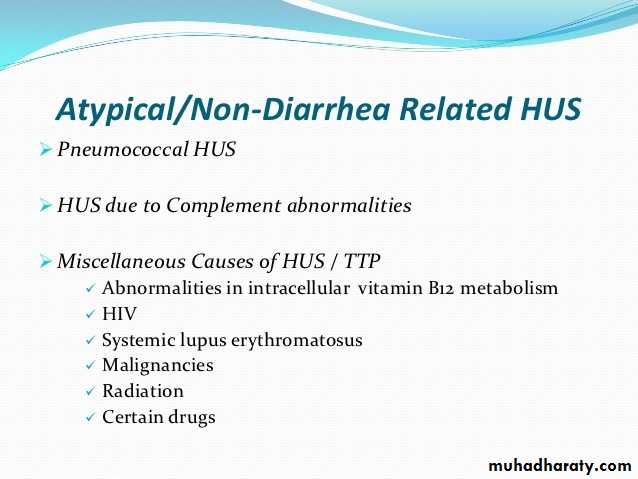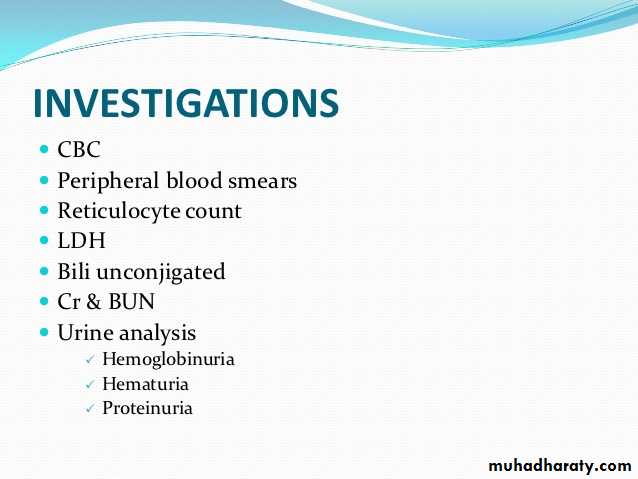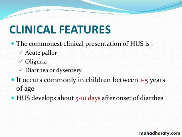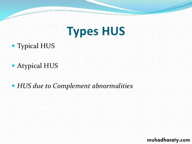 Types of hemolytic uremic syndrome Clinical features of hemolytic uremic syndrome Investigations for hemolytic uremic syndrome management of hemolytic uremic syndrome