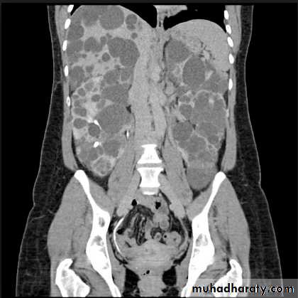 Clinically renal colic, loin mass , heamaturia and hypertension, Renal tissue interposed between the cysts after time dssimcted ended with renal failure