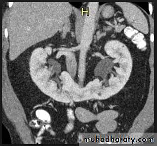 Distortion of pelvi- calyceal system depend on cyst size, number and position.