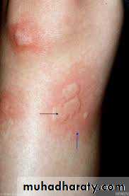 Circumscribed edematous papule with erythematous boarder and pale center , could be of various size .It is evanescent ( transient ) takes few hours and fade-away
