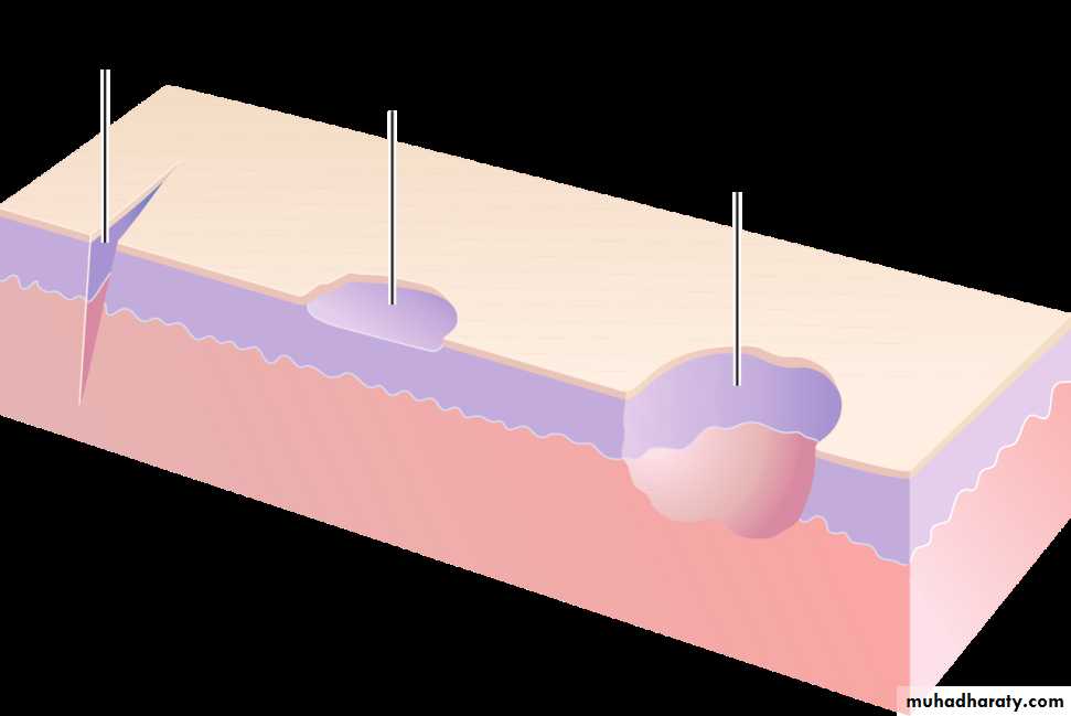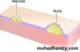 Vesicles “Little bladder” : are circumscribed epidermal elevations less than 1 cm in size and containing clear fluid.