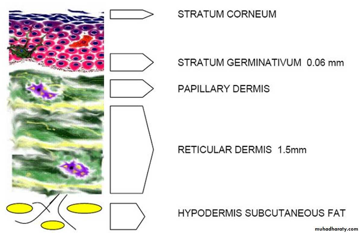 Subcutaneous layer : fatty layer protect the body from heat and mechanical trauma
